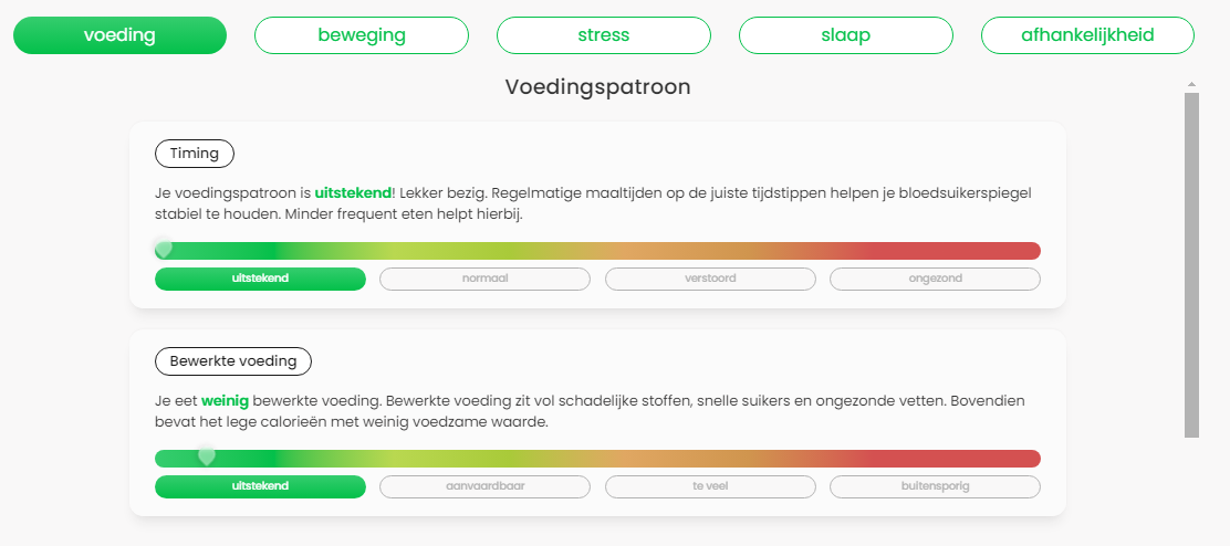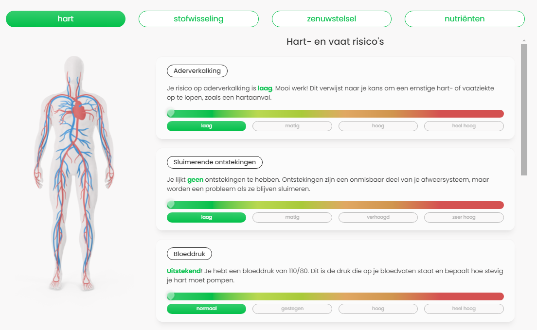 Met deze scores krijg je een uitgebreid en helder overzicht van hoe jouw lichaam functioneert en welke risico’s voor jou relevant zijn.